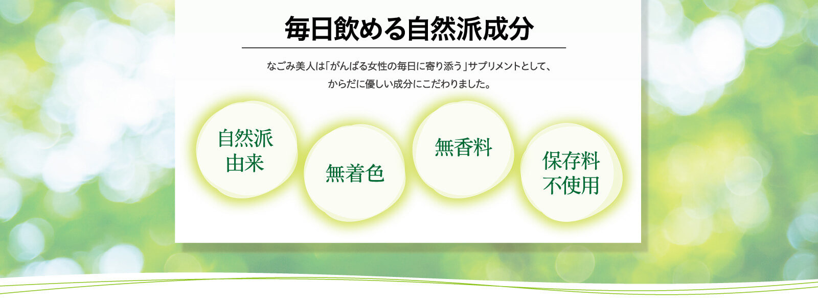 炭酸水素ナトリウム(重曹):温浴効果を高め、適度な清浄作用と保湿効果で